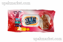 Салфетки влажные 120шт с клапаном 100% Чистоты для детей с экстрактом алоэ вера 120шт В упаковке: 16