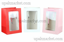 Пакет бумажный подарочный 23х18х10см Люкс c окном