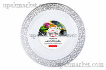 Тарелка пластиковая 230мм с каемочкой "Ажурная" серебро /20уп х 6шт/ Royal Party