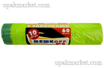 Пакет для мусора с завязками 60л салатовые (10шт в рулоне) 15мкм 70х60 Мешкоff