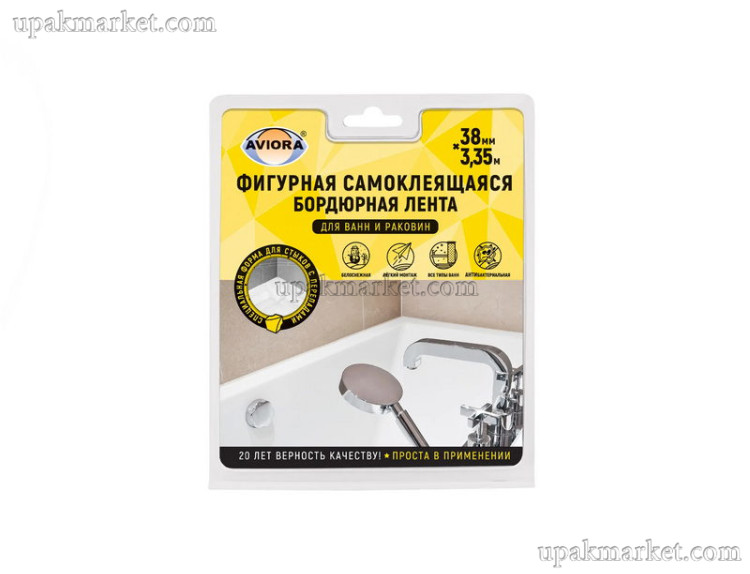 Бордюрная клейкая лента для ванн и раковин 38мм х 3,35м фигурная AVIORA