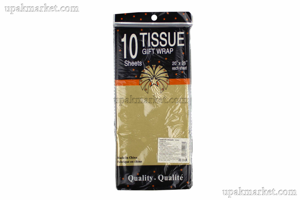 Бумага тишью 50/66 Золотая (10шт) - это универсальный материал, который легко сочетается с другими элементами декора и может быть использован в самых разнообразных проектах.