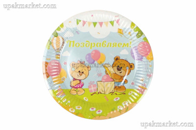 Тарелка бумажная 180мм "Мишка" Папирус /14уп х 50шт/