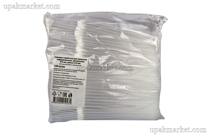 Трубочки для коктейля 5х210 с изгибом прозрачные /48уп х 250шт/