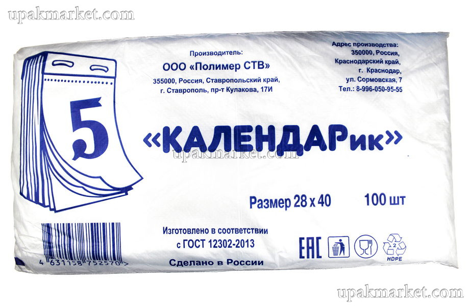 Пакет фасовочный ПНД 28х40 Календарь 6мкм