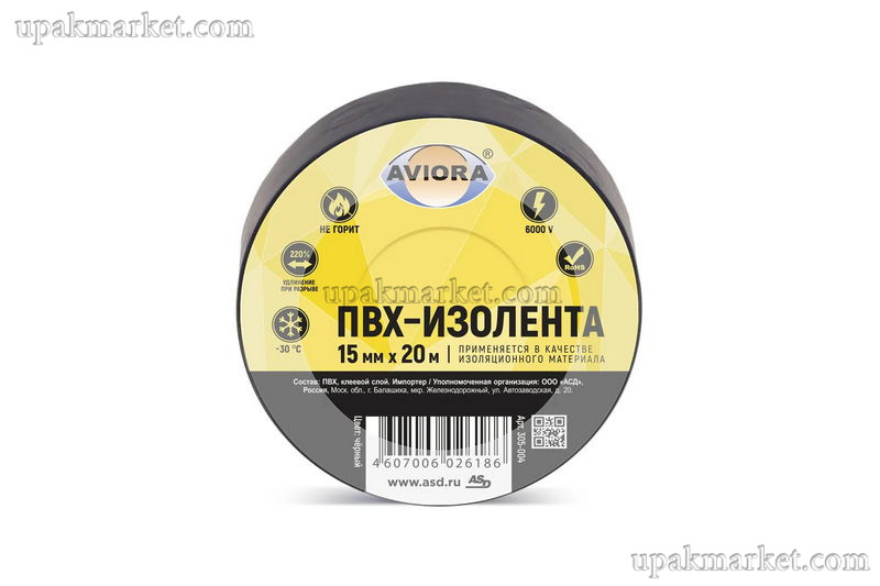 Изолента ПВХ 15мм х 20м черная AVIORA