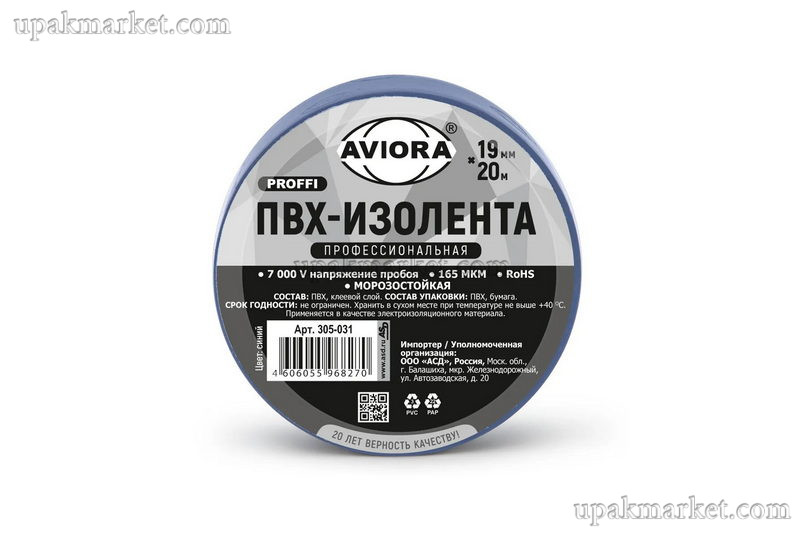 Изолента ПВХ 19мм х 20м профессиональная синяя AVIORA
