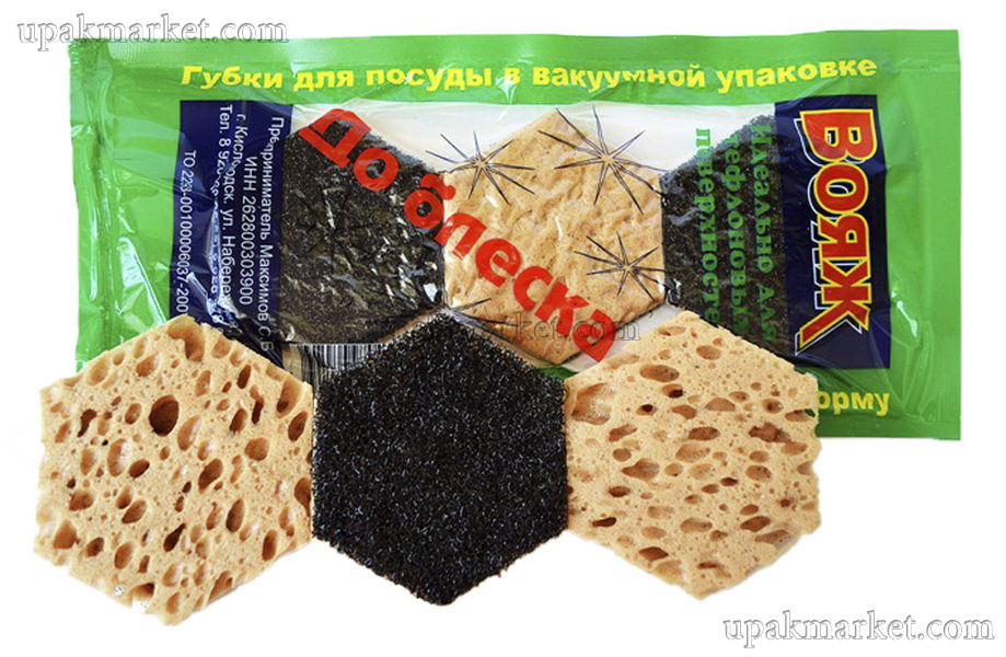 Губка для посуды вакуум.упак."Тефлоновая до блеска" ВОЯЖ