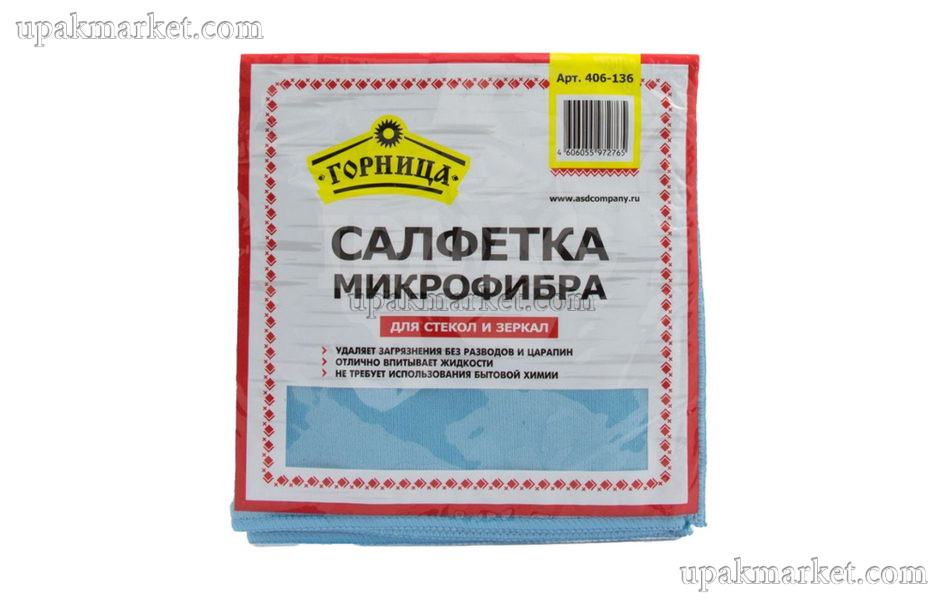 Салфетка из микрофибры 35х35 для стекол и зеркал ГОРНИЦА