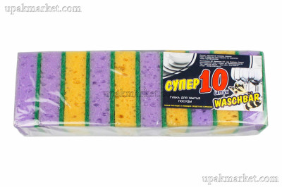 Губка для посуды 96х64х30мм "Супер-10" МИКС WASCHBAR