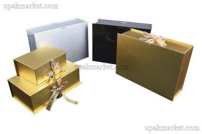 280*200*80мм, коробки в виде шкатулок, три блестящие расцветки с тиснением, атласный бант.
