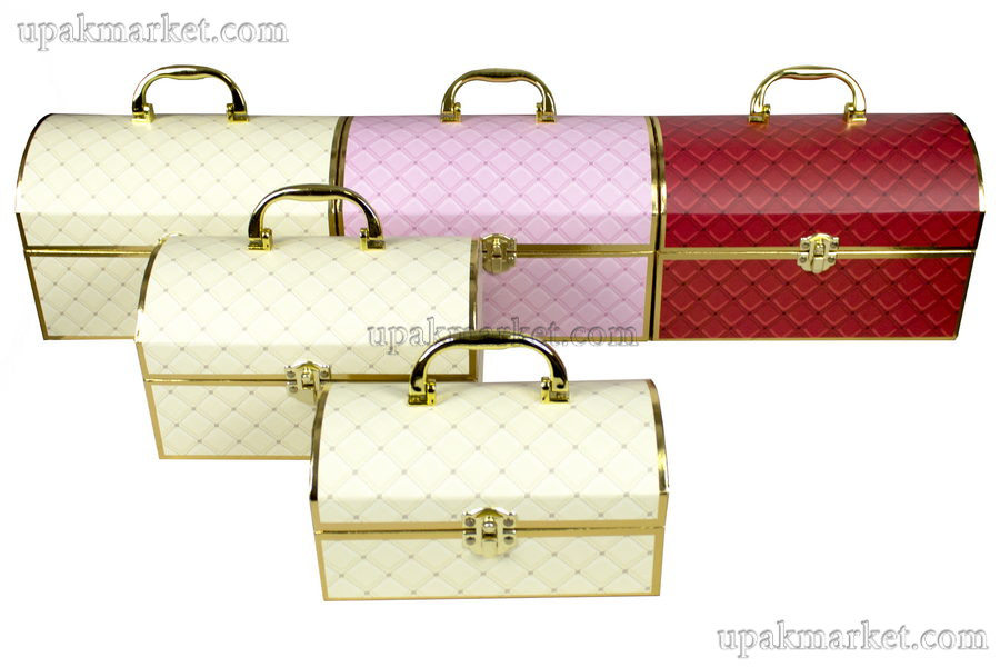 265*165*168мм, три цвета, подарочная коробка в виде сундучка, металическая застежка и ручка.