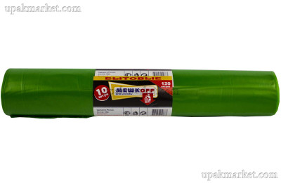 Пакет для мусора 120л ПВД быт. зеленые (10шт в рулоне) 37мкм 65х105 Мешкоff