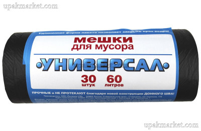 Пакет для мусора 60л (30шт в рулоне) 11мкм 59х69 Универсал - этот вид пакета отлично подходит для утилизации.