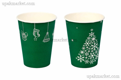 НГ Стакан бумажный 250мл 80мм новый год зеленый Л-ПАК (1000шт)