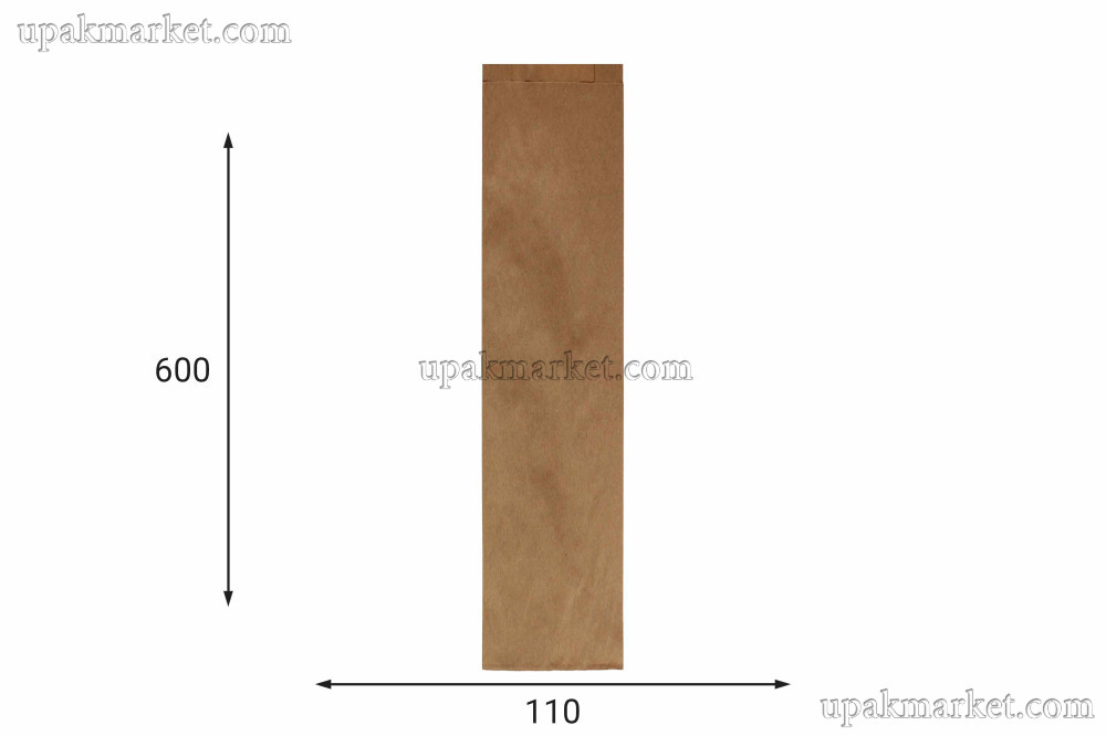 Пакет бумажный пищевой 600x110x40 крафт бурый 40гр НПФ