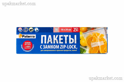 Пакеты для замораживания и хранения продуктов 1л с замком ZIP-LOCK 18х20 PATERRA (25шт в упаковке)