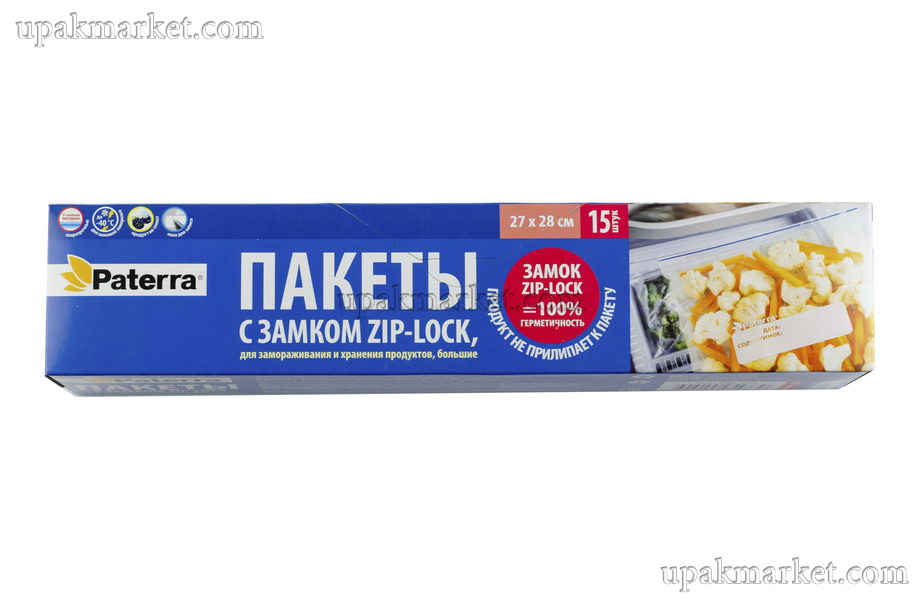 Пакеты для замораживания и хранения продуктов 3л с замком ZIP-LOCK 27х28 PATERRA (15шт в упаковке)