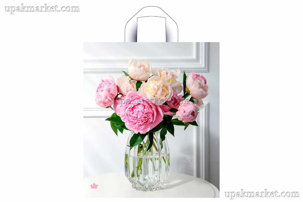 Пакет с петлевой ручкой 40х36 "Роскошные пионы" 37мкм Тико /6уп х 50шт/