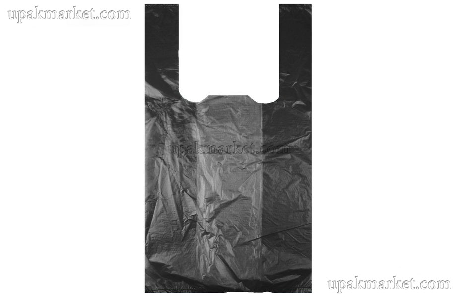 Пакет майка 22х42 2,6гр черная Ростов /40уп х 100шт/ представляет собой прочный пакет с ручками, который напоминает форму майки.