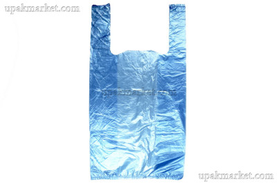 Пакет майка 23х43 2,5гр синяя СТВ /50уп х 95шт/ представляет собой легкий пакет с ручками, который напоминает форму майки.