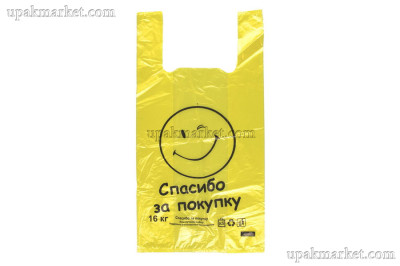 Пакет майка 28х49 "Смайл" 5,0гр желтый НОВ - этот вид упаковки способен выдерживать значительный вес нагрузки.