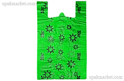 Пакет майка 37х62 "Звезда" 11гр зеленый Д /20уп х 50шт/ представляет собой легкий пакет с ручками, который напоминает форму майки.