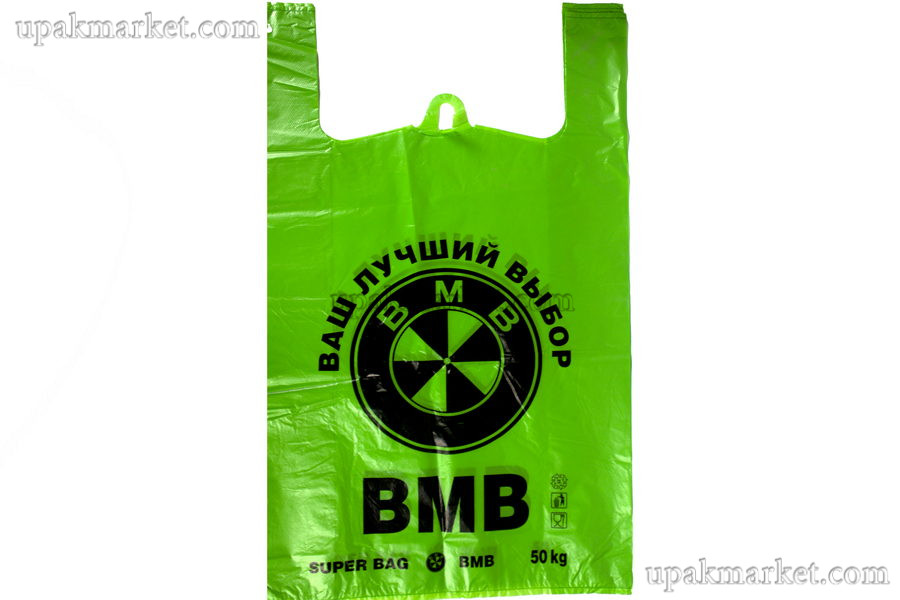 Пакет майка 43х69 "БМВ" 19гр зеленый СТВ /10уп х 50шт/ не деформируются при многократном использовании.