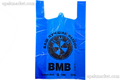 Пакет майка 43х69 "БМВ" 19гр синий СТВ /10уп х 50шт/ - этот вид товара является стойким к ударам.