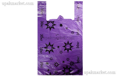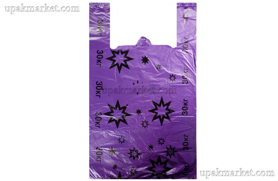 Пакет майка 35х60 "Звезда" 7гр фиолетовый Мега /40уп х 50шт/ изготавливается из легкого материала, что способствует невесомости пакета.