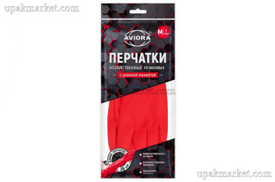 Перчатки резиновые хозяйственные с удлиненной манжетой M красные