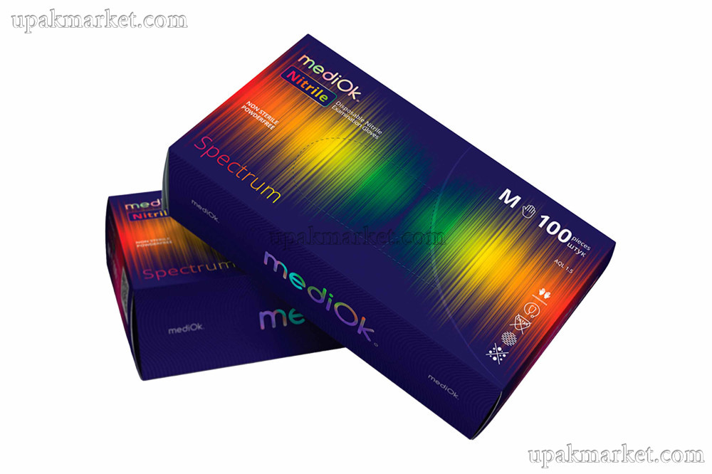 Перчатки нитриловые неопудренные смотровые М разноцветные SPEKTRUM плотные 3,8 гр MEDIOK / 10уп х 100шт /