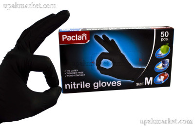 Перчатки нитриловые неопудренные M черные PACLAN ПРЕМИУМ /20уп х 50шт/