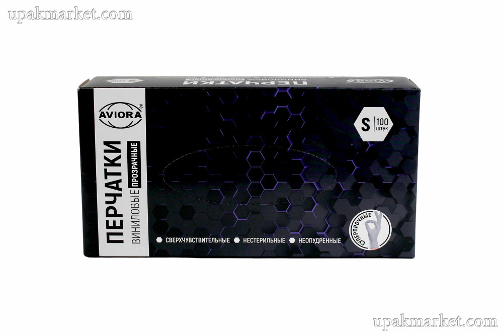 Перчатки виниловые неопудренные S АВИОРА /10уп х 100шт/
