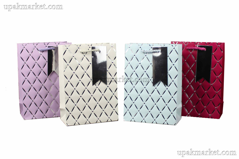 Пакет бумажный подарочный 12 х 15 х 6 Люкс с тиснением микс