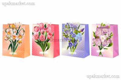 Пакет бумажный подарочный 18х23х10см Люкс микс