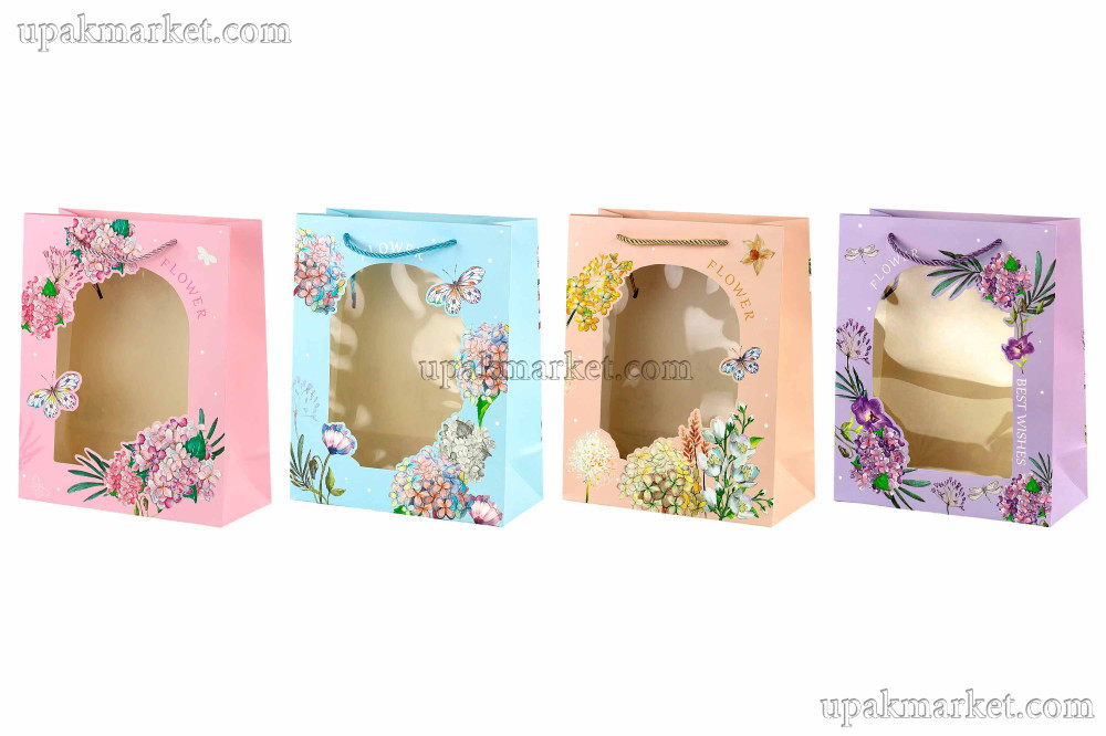 Пакет бумажный подарочный 23х18х10см Люкс с окном микс