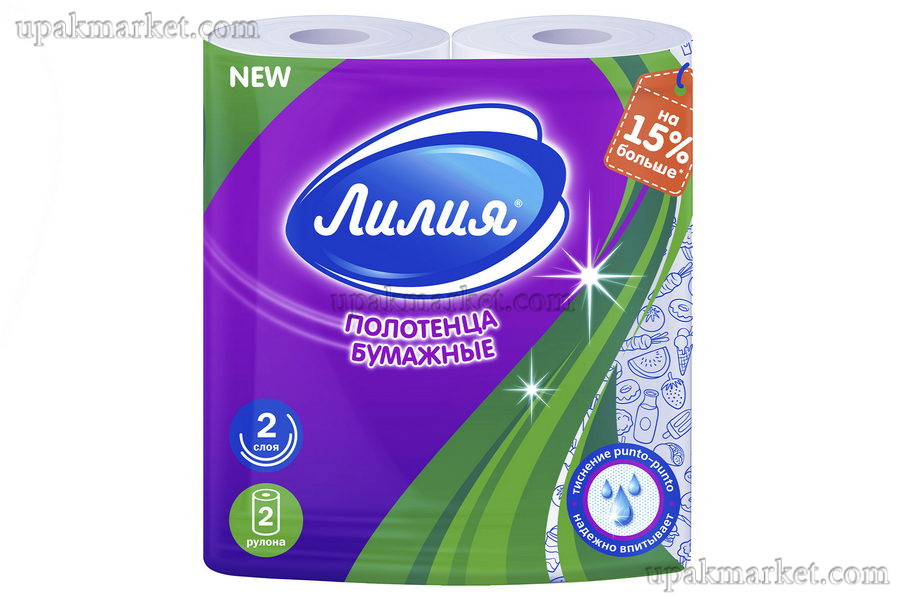 Полотенца бумажные 2-х слойные 11 метров ЛИЛИЯ, 2 рулона в упаковке
