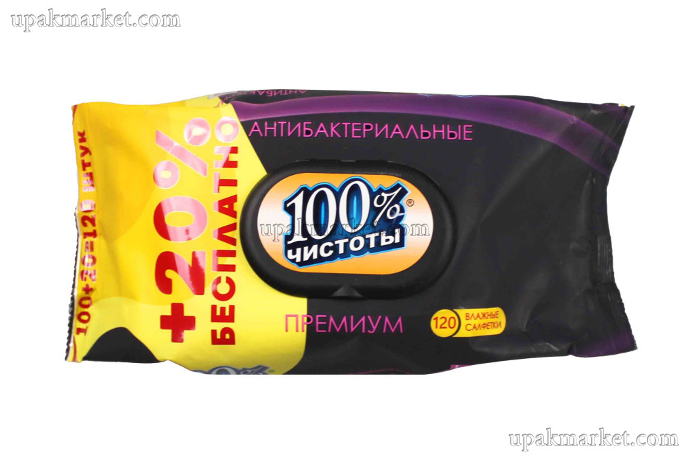 Салфетки влажные 120шт с клапаном 100% Чистоты Антибактериальные Premium Озон