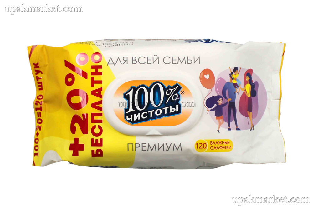 Салфетки влажные 120шт с клапаном 100% Чистоты Универсальные для всей семьи Premium Озон
