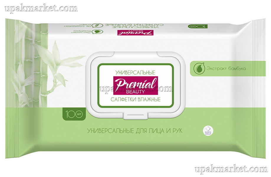 Салфетки влажные 100шт натуральные универсальные Бумфа Премиал