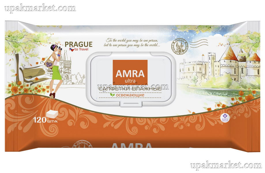Салфетки влажные 120шт с крышкой тревел Прага Бумфа АМРА