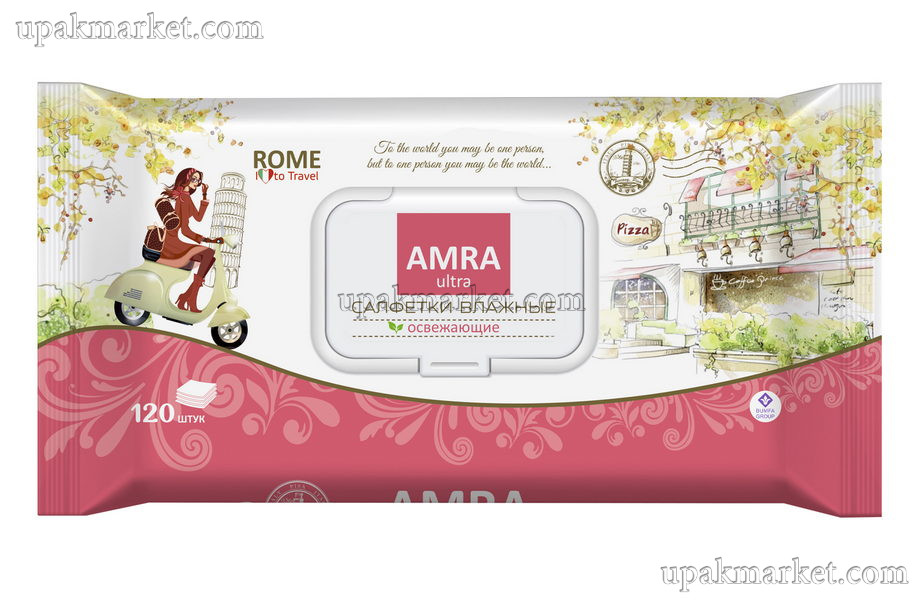 Салфетки влажные 120шт с крышкой тревел Рим Бумфа АМРА