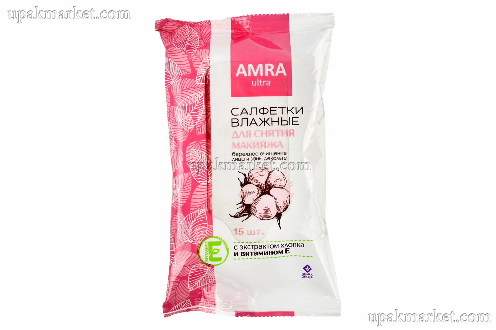Салфетки влажные 15 шт для снятия макияжа Бумфа Амра изготовлены из экологически чистых, безопасных материалов, которые заботятся о вашей коже, сохраняя её здоровой.