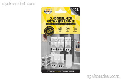 Самоклеящиеся крючки для ключей 2х3см 5шт/уп AVIORA (36шт) способны выдерживать нагрузку до 0,5 кг, позволяя удобно разместить не только ключи, но и брелоки, противоугонные цепи для велосипедов и другие мелочи.