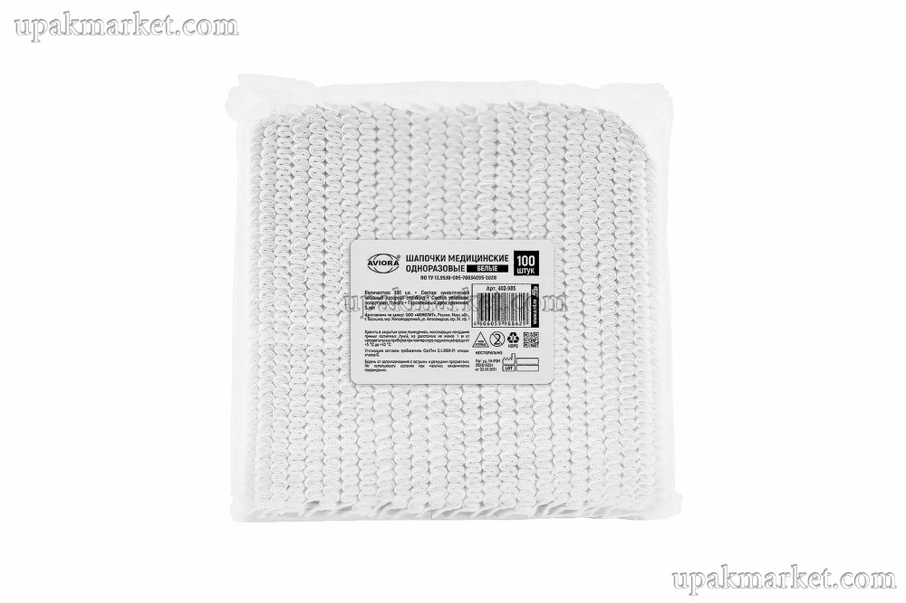 Шапочка-берет нетканная белая AVIORA /20уп х 100шт/ 20 дюйм