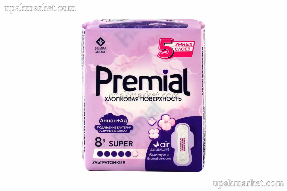 Прокладки женские гигиенические с крылышками Super 8шт Premial