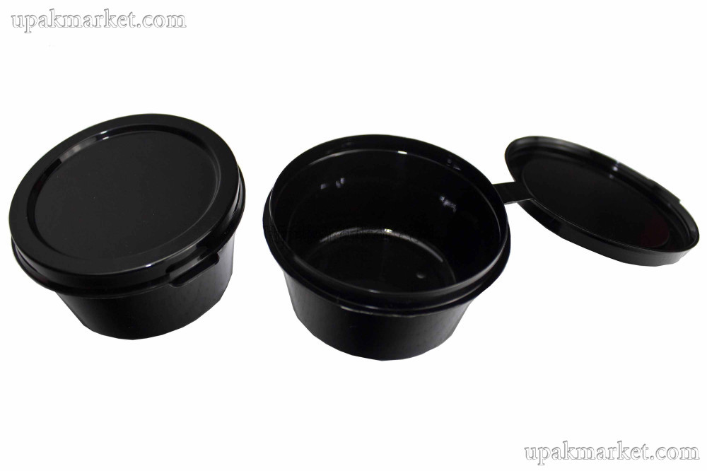 Соусница 50мл с верхним закрытием крышки чёрная ПП (2023) /15*80/ВЗЛП