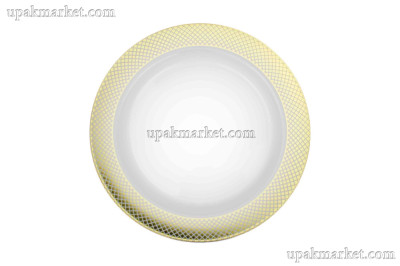 Тарелка пластиковая 190мм с каемочкой "Сетка" золото /36уп х 6шт/ доступны по цене.