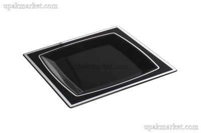 Тарелка пластиковая 240х240мм ПС Квадратная черная с серебряной каймой /12уп х 10шт/